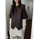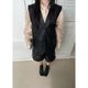 預購 正韓春秋款皮革v領寬鬆長版皮革西裝背心2色