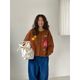 預購 正韓碎花滿版立領寬鬆長版拉鏈外套2色